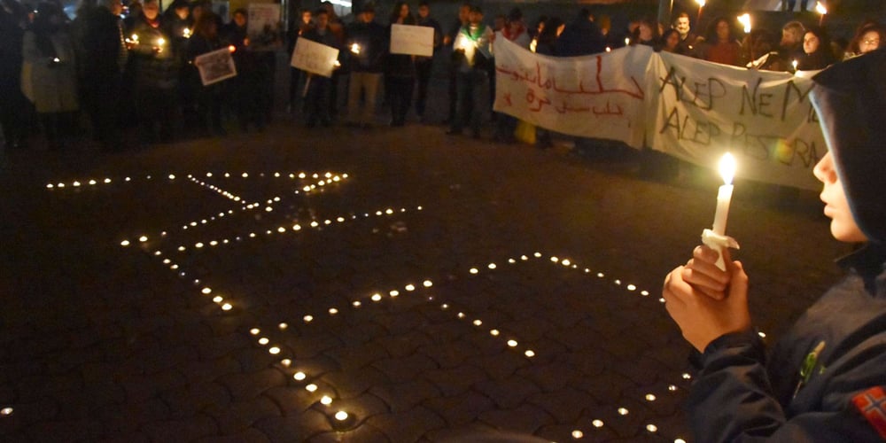 Wie kann man ihnen dies auch verübeln? Was können denn die Kerzen schon ausrichten, die quer durch Europa für Syrien brennen… Das Gefühl der Machtlosigkeit herrscht vor. Und mit dieser Machtlosigkeit paart sich Gleichgültigkeit und Zynismus. Wir dürfen diese Gefühle nicht obsiegen lassen. Zwar wird unsere Aktion weder die russischen und syrischen Bombardierungen noch die Massenhinrichtungen verhindern, die von den bewaffneten Truppen begangen werden, um die Stadt zu «befreien». Unser Mitgefühl hindert sie nicht daran, Zivilistinnen und Zivilisten zu entführen oder zu töten. Nein, aber unser Engagement zeigt unseren Regierungen, dass uns das Schicksal der Menschen in Aleppo nicht egal ist.