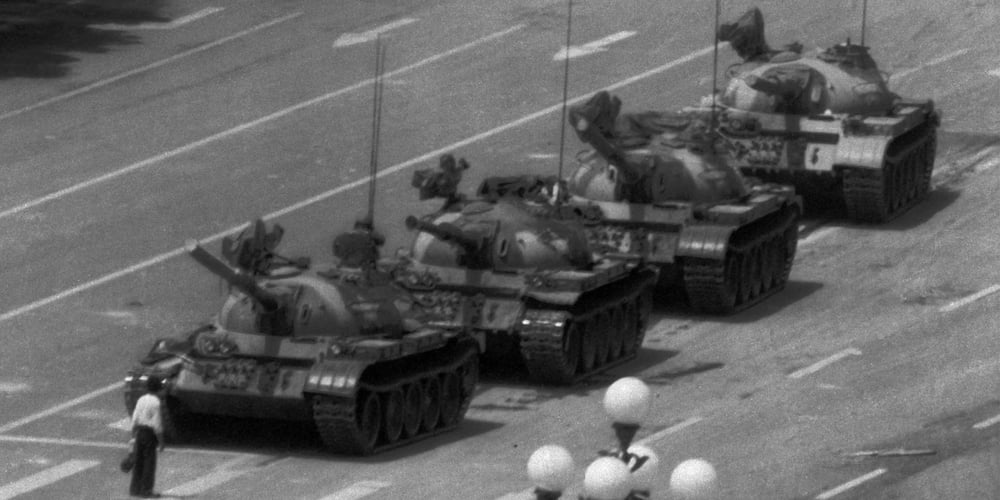 Es ist eines der kraftvollsten Bilder für den Kampf um Freiheit der jüngeren Geschichte: Ein Mann, zwei Einkaufstüten in der Hand, steht am 4. Juni 1989 allein auf dem Pekinger Tiananmen-Platz, vor einer anrollenden Panzerkolonne. Er hebt die Hand, und für einen kurzen Moment stoppen die Panzer.