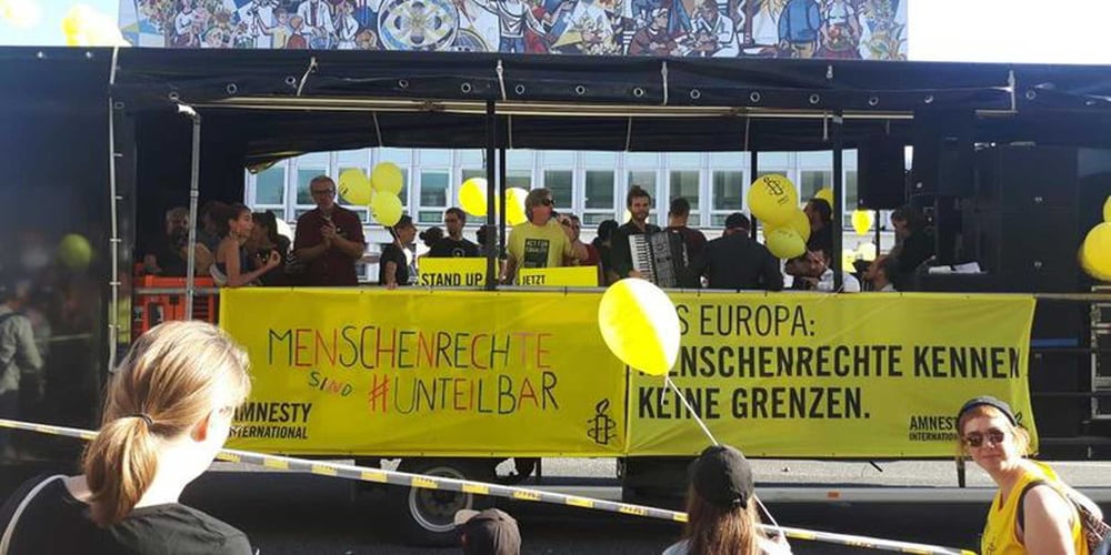 Gemeinsam mit einem breiten Bündnis von Organisationen rief Amnesty International Deutschland deshalb auf, am 13. Oktober auf Berlins Strassen ein Zeichen zu setzen. Die Aktion unter dem Titel #unteilbar stand für soziale Gerechtigkeit, Menschenrechte, Schutz und Asyl und gegen Ausgrenzung und Rassismus.
