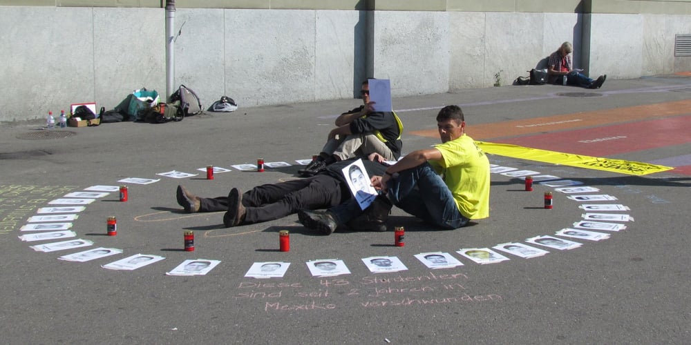 Die 43 Studenten des Raúl Isidro Burgos Training Colleges für LehrerInnen in ländlichen Regionen verschwanden in der Nacht des 26. September 2014, nachdem sie von lokalen Polizeieinheiten festgenommen worden waren. Die jungen Männer waren auf dem Weg nach Mexiko Stadt, wo sie an einer Demonstration teilnehmen wollten, die an das Studentenmassaker vom 2. Oktober 1968 erinnerte. Bisher konnten nur die Überreste eines Studenten, des 19jährigen Alexander Mora Venancio, identifiziert werden. Von den anderen 42 Studenten fehlt bis dato jede Spur.