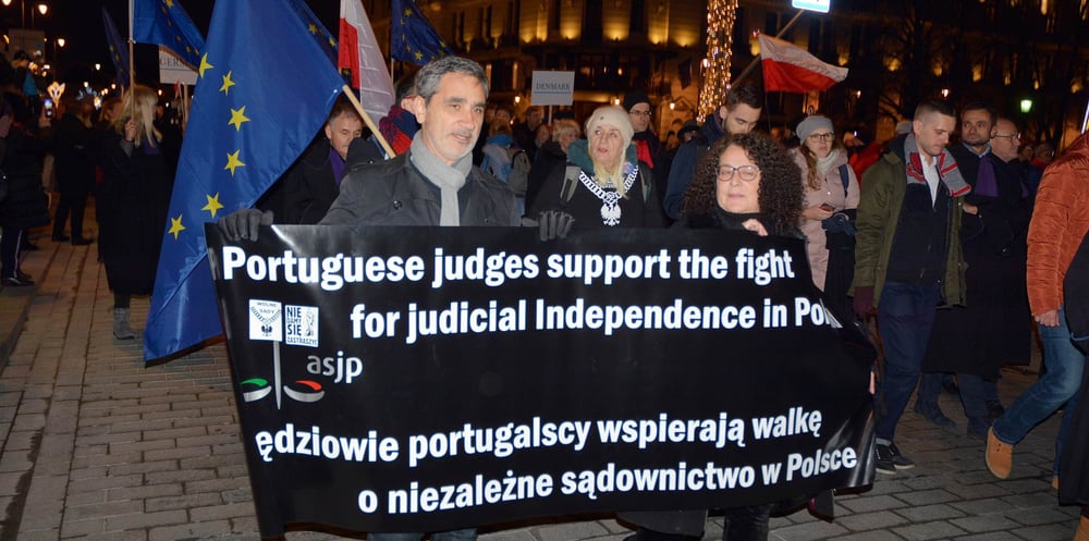 Tausende Demonstrierende, darunter viele Richter, Juristinnen und andere BürgerInnen aus rund 20 Staaten Europas nahmen am «Marsch der tausend Roben» teil und zogen schweigend durch das Stadtzentrum vom Obersten Gerichtshof zum Parlamentsgebäude. Die Demonstration richtete sich gegen eine Gesetzesvorlage, die dazu diene, polnische Richter und Richterinnen zu bestrafen, die sich kritisch über die Justizreformen der Regierung äussern. Das Gesetzesvorhaben stehe damit in Widerspruch zu den Grundsätzen der Europäischen Union.