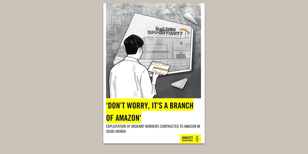 Ein neuer Bericht mit dem Titel «Don't worry, it's a branch of Amazon» (Keine Sorge, es ist eine Filiale von Amazon, PDF, 53 Seiten in Englisch) zeigt, wie Amazon es versäumt hat, zu verhindern, dass Vertragsarbeiter*innen in Saudi-Arabien wiederholt Menschenrechtsverletzungen ausgesetzt waren, obwohl über einen langen Zeitraum hinweg Beschwerden von Arbeitnehmer*innen über ihre Behandlung eingegangen waren. In vielen Fällen ist es sehr wahrscheinlich, dass es sich bei den Verstössen gegen die Menschenrechte um Menschenhandel handelte, wenn man die Täuschung bei der Anwerbung und die Ausbeutung vor Ort bedenkt.