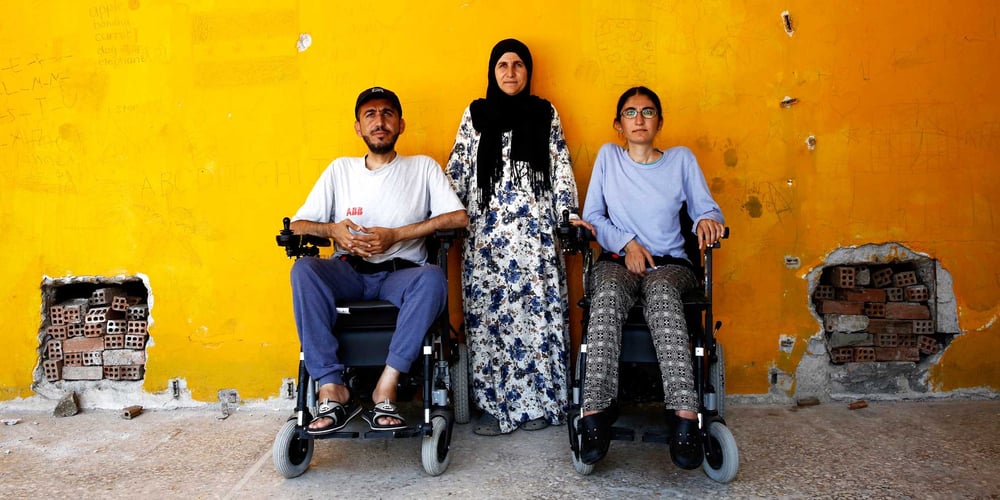 Sie haben eine entbehrliche, gefährliche Reise hinter sich. Alan Mohammed (30) und seine Schwester Gyan (28) leiden beide seit Geburt an einer schweren Muskelkrankheit. Als der selbsternannte Islamische Staat IS sich 2014 ihrem Dorf in Nordostsyrien näherte, wagten die beiden gehbehinderten Geschwister mir ihrer Familie die beschwerliche Flucht über die Berge in die Türkei. Dreimal versuchte die Familie die türkische Grenze zu überqueren, sie wurde aber jedes Mal von türkischen Sicherheitskräften beschossen, weshalb sie in den Nordirak weiterreisen musste. Dort blieb die Familie zunächst eineinhalb Jahre, musste dann aber erneut vor dem IS fliehen.