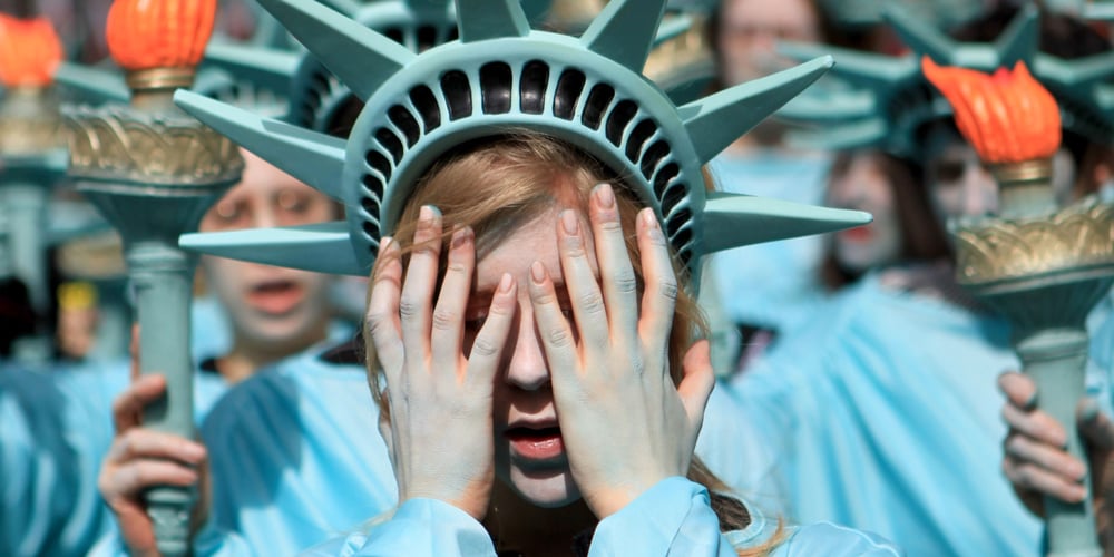 Wir haben vor dem Trump Tower Fussmatten mit der Aufschrift «Refugees Welcome» ausgelegt und vor der US-Botschaft in London in Kostümen trauender Freiheitsstatuen demonstriert.