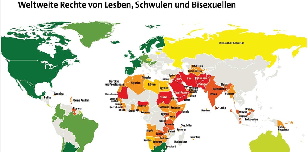 Noch immer stellen 76 Länder gleichgeschlechtliche Beziehungen und nichtgeschlechtskonformes Verhalten unter Strafe – in klarem Verstoss gegen Völkerrecht. In sieben Staaten gilt die Todesstrafe. Während homophobe Gesetze teilweise ein Erbe der Kolonialzeit sind, werden Politiker und Politikerinnen nicht müde, sie im Namen der eigenen Kultur und Tradition zu rechtfertigen und Homosexualität als Importartikel, Verbrechen gegen die Natur, Ausschweifung und Skandal zu verteufeln.