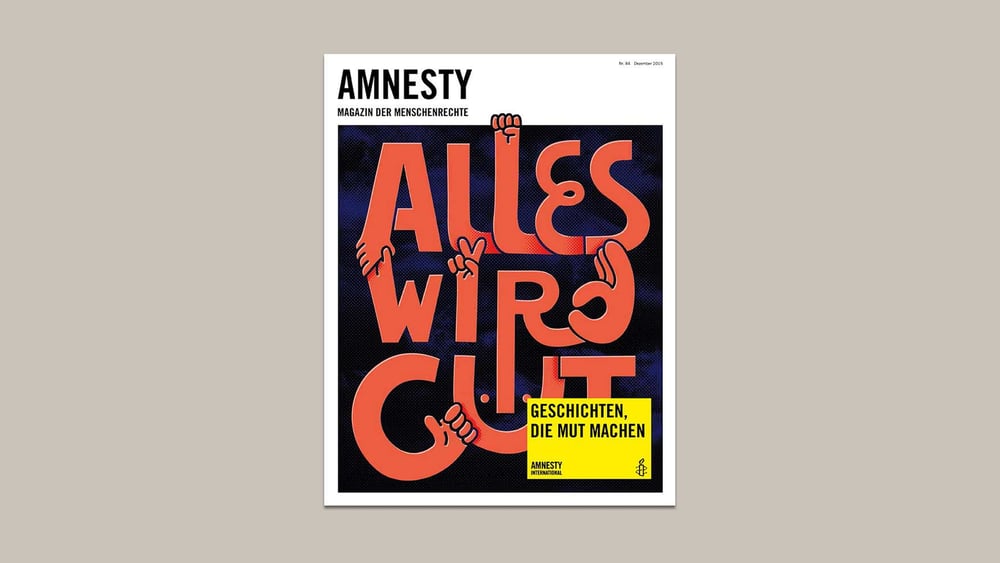Eine besondere Ausgabe des Magazins, gemeinsam produziert mit den KollegInnen von Amnesty Deutschland und Amnesty Österreich. Ein für einmal positives Heft, das von Menschen berichtet, die sich erfolgreich für Menschenrechte engagieren. Die auch in schwierigen Situationen nicht aufgeben. Ein Magazin über Entwicklungen, die in die richtige Richtung gehen. Und nicht zuletzt Geschichten, die Sie hoffentlich anregen, selbst auch aktiv zu werden. AMNESTY Nr. 84 - Dezember 2015