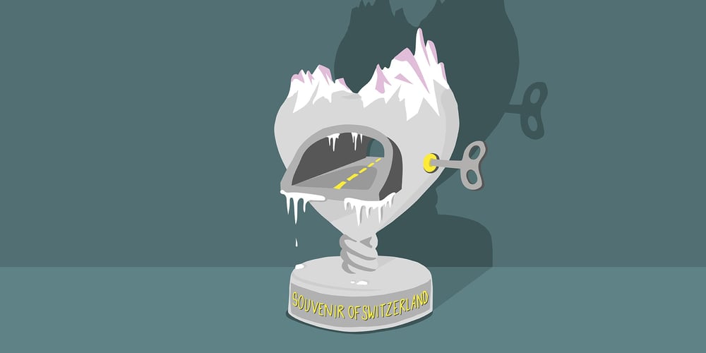 Und dann heisst es, die Schweiz hätte kein Herz. Sehen Sie, die Schweiz hat ein Herz! Ein riesiges Herz! Ich habe neulich ein Werbeplakat gesehen für den Gotthard. Also für den Berg, den Gotthard. Darauf stand: «Der Gotthard: Das Herz der Schweiz.» Sehen Sie, die Schweiz hat durchaus ein Herz. Den Gotthard. Das Herz der Schweiz ist ein riesiger Brocken aus Stein. Und dieser Stein ist mit Löchern durchbohrt, und in diesen Löchern sitzen die Deutschen im Stau und singen «La Paloma». So sieht das Herz der Schweiz aus.