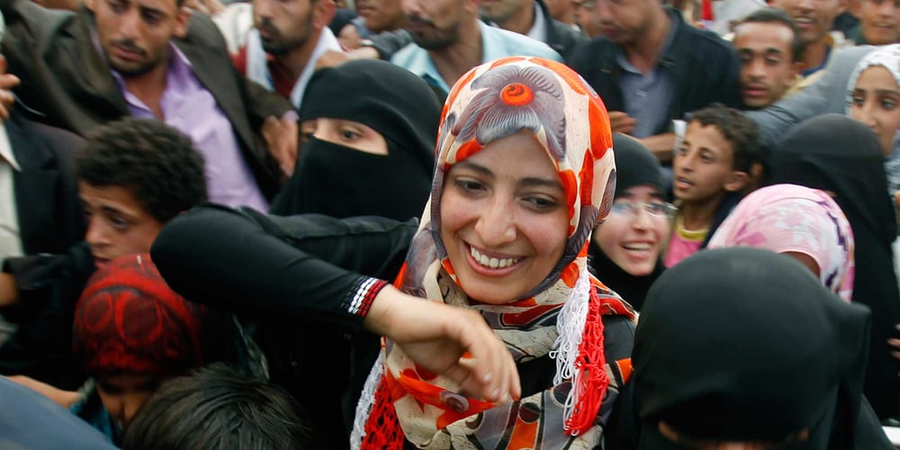 Tawakkol Karman ist 32 Jahre alt, als ihr die norwegische Königsfamilie am 7. Oktober 2011 die Medaille des Friedensnobelpreises überreicht. Das Nobelpreiskomitee ehrt Karman gemeinsam mit zwei Liberianerinnen für ihren Kampf um «die Sicherheit von Frauen» und deren «volle Teilhabe an der Schaffung von Frieden».