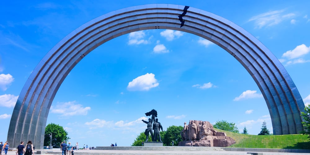 Zwei Monate nach Beginn des russischen Angriffskrieges gegen die Ukraine liegt auf einem Hügel in Kyjiw ein abgetrennter Kopf. Er war Teil einer acht Meter hohen Bronzefigur, die einen ukrainischen und einen russischen Arbeiter darstellte, die gemeinsam einen sowjetischen Freundschaftsorden in die Höhe hielten. Die Statue stand unter dem imposanten «Bogen der Völkerfreundschaft», der 1982 zum 60. Jahrestag der Sowjetunion eingeweiht worden war.