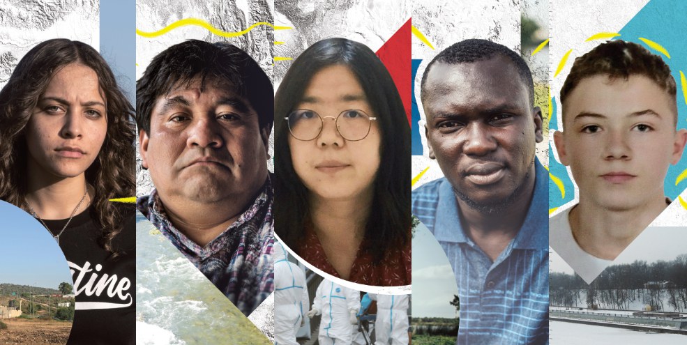Dieses Jahr sind das Janna Jihad, eine 15-jährige Palästinenserin, die bereits ihr halbes Leben lang Übergriffe auf ihr Dorf im israelisch besetzten Westjordanland dokumentiert, Bernardo Caal Xol, indigener Aktivist aus Guatemala, der im Gefängnis ist, weil er sich für den Schutz eines für seine Gemeinschaft lebenswichtigen Flusses einsetzte, Zhang Zhan, ehemalige Anwältin und «Citizen»-Journalistin aus China, die im Gefängnis sitzt, weil sie über den Coronavirus-Ausbruch berichtete, Imoleayo Michael, angeklagt, weil er in Nigeria gegen Polizeigewalt protestierte und Mikita Zalatarou, der bei den Protesten in Belarus als 16-jähriger verhaftet, geschlagen und zu fünf Jahren Gefängnis verurteilt wurde.