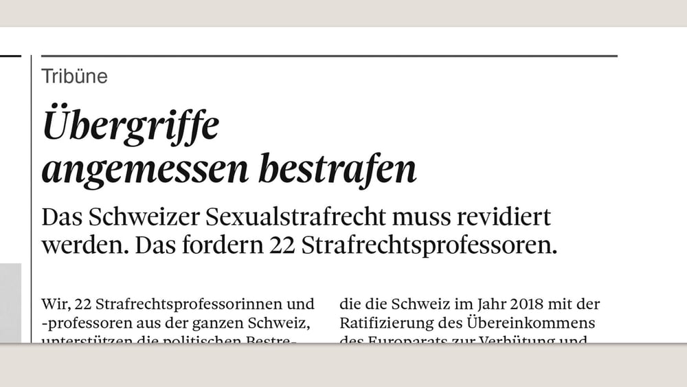 Die Mehrheit der Schweizer Strafrechtsprofessorinnen und -professoren unterstützt eine grundlegende Reform des schweizerischen Sexualstrafrechts. In einem öffentlichen Appell schlossen sich 22 Strafrechtlerinnen und Strafrechtler aus der ganzen Schweiz der Petition von Amnesty International an.